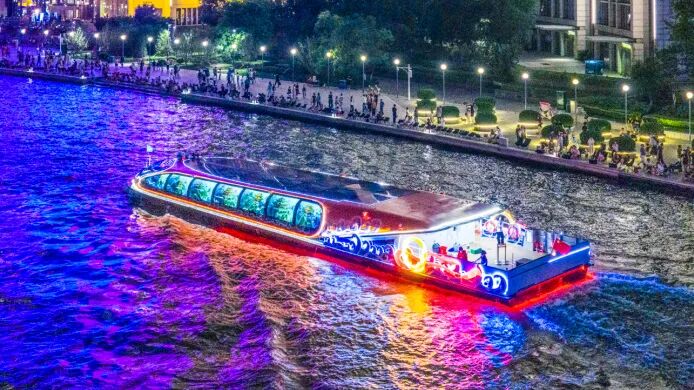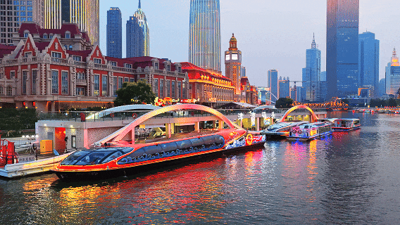 海河游船运营期为3月中旬至11月中下旬,当前已停航。明年3月中旬,您可再登游船,赏海河日升月落,阅津沽古今风华。