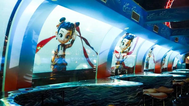 “津门秀”借瑞吉酒店的建筑轮廓,用光影演绎“时空之门”的奇幻,尽显中国韵味。