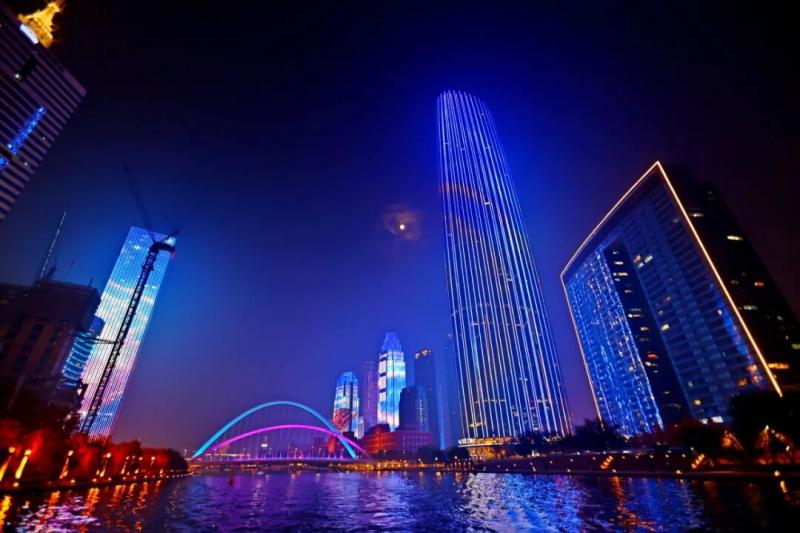 2025年升级后的8.2公里光影带,将沿岸夜景打造成一幅流动的画卷——这场以“城市光脉”为核心理念的灯光秀,正用光影细腻勾勒出天津“古今交融、中西合璧、多元并蓄”的独特文化气质。