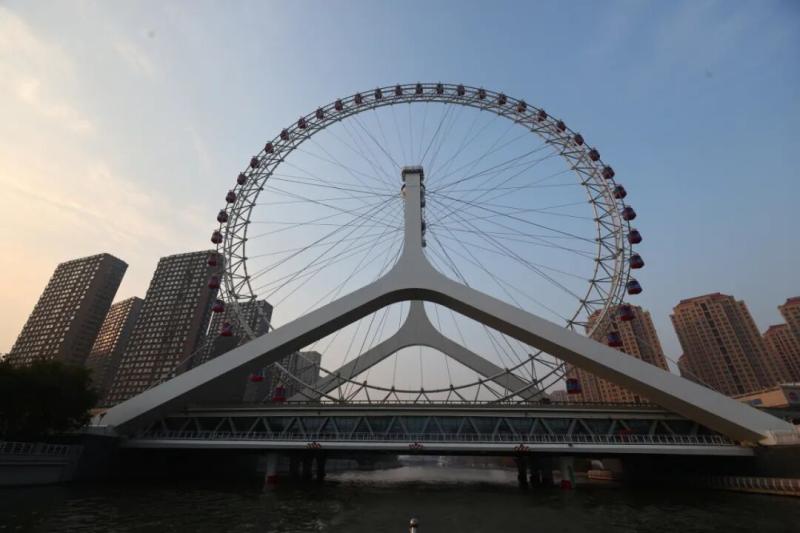 又或是到永乐码头——紧邻永乐桥的它,是打卡天津之眼的绝佳点位,也是衔接天美艺术街区的节点。登岸步行片刻,既能仰望120米高“桥轮合一”的天津之眼,又能逛画廊、文创店聚集的艺术街区,感受地标与艺术的碰撞;