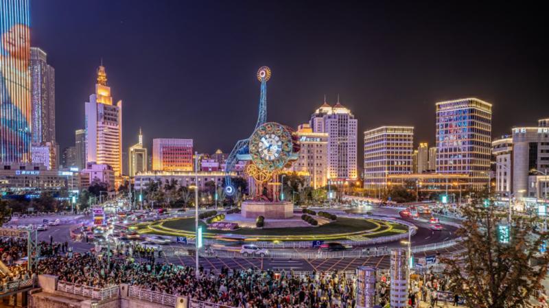 天津站码头上,世纪钟的刻度被灯光映得清晰分明,解放桥的钢骨则被光影描出利落硬朗的线条,二者交相辉映,彰显出工业文化特有的厚重格调;