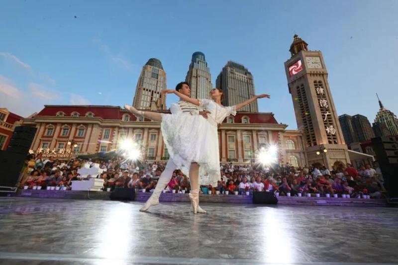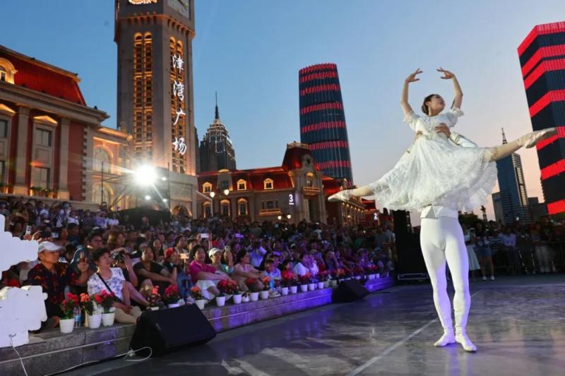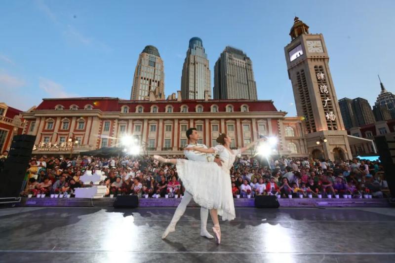 津湾码头广场上,芭蕾舞者的轻盈身影与“城市会客厅”的璀璨灯光相映,优雅得似一场不愿醒的梦;